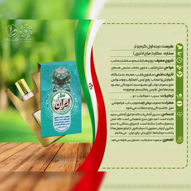 #عطر طبیعی ایران 🇮🇷 🌱 طبیعت: درجه اول گرم و تر ⭐️ ستاره: عطارد (مزاج اختری) 🗓️ شروع مصرف: روز چهارشنبه و سهشنبه شب ❤️ احساس: سبزی آبادانیات که مرا غرق آرامشی سپید کرده است؛ ثمره خون سرخ شهیدانی است که تمدن چند هزارساله را ساختهاند. از میرزای جنگلی تا حمید باکری، از نواب صفوی تا حسن باقری، از حمله مغولها تا رشادت سردار دلها. تا پای جان، برای ایران، میمانیم ... عطر طبیعی «ایران» طیبستان — رایحهی میهن، نغمهی عشق و پایداری در دلِ هر خاک، بویی نهفته است که از جنسِ روح ساکنانش سخن میگوید. و در سرزمینِ عشق و ایثار، ادب و پایداری، زیبایی و شرافت، آن بو «ایران» نام دارد. هر قطره از عطر ایران، همچون پرچمی برافراشته از صداقت و هنرِ این خاک است؛ رایحهای که آرامش را میآفریند، عشق را زنده میکند و دل را به مهربانی وطن پیوند میزند. ماهیت و مزاجشناسی طبیعت: درجه اول گرم و تر کوکب حاکم: عطارد — سیارهی توازن، هوش و گفتوگو زمان آغاز مصرف: روز چهارشنبه و سهشنبه شب در طب نجومی، عطارد نمادِ دانش، بیان و انرژی متعادل ذهنی است. آغاز مصرف در بازهی چهارشنبه و سهشنبه شب توصیه میشود تا اثرات رایحه در تعادل میان قوای مغز و قلب بیشترین نمود را داشته باشد. ترکیب گیاهی–علمی عصارهی طبیعی سیب با ترکیبات مرکبات تازه و اندکی اسانسهای گیاهیِ معتدل. ترکیب شیرینی سیب با تازگی مرکبات، رایحهای معتدل و زنده میسازد که هم نشاطآور است، هم آرامبخش. در آروماتراپی، چنین ساختاری موجب تقویت انگیزه، افزایش تمرکز، بهبود خواب و پاکسازی ذهن از استرسهای انباشته میشود. مولکولهای ترپن و فلاونوئید سیب در کنار اسانسهای مرکبات، با افزایش انتقال دوپامین، سبب بروز حس رضایت و آرامش ذهنی میگردند؛ همان احساسی که از بودن در هوای آزادِ وطن به وجود میآید. خواص طبی و درمانی عطر «ایران» با مزاج گرم و تر خود، یکی از عطرهای جامع در طب ایرانی محسوب میشود؛ ترکیبی که هم مقوّی و هم مفرّح است و در تعادل قوا، نقش آرامکننده و سمزدا دارد. خواص اصلی آن: مفرّح القلوب و تقویت روح شادی مقوی قلب، معده، دستگاه گوارش و اعصاب رفع ترس و اضطراب، درمان وسواسهای فکری خوابآور طبیعی در شبهای پرتنش دفع سموم بدن و بهبود گردش خون تسهیل درمان سرماخوردگی و دردهای عضلانی بهبود ورم مفاصل، نقرس، رماتیسم و التهاب روده از منظر طب بویایی، این عطر در گروه ملطّفها و مشهیّات قرار میگیرد: موادی که رطوبت ظریف ایجاد میکنند، اشتهای طبیعی را برمیگردانند و قوهی مغزی را از خشکیهای سودایی میرهانند. توضیح علمی–مزاجی عطر «ایران» نمونهای از «مزاج اختری عطاردی» است؛ یعنی عطری که با مزاج هوشمندانه و متناسب با وضعیت روانی هر فرد عمل میکند. در لحظهی استشمام، اگر ذهن خسته باشد، آرامش میبخشد؛ اگر اندوهگین باشد، نشاط میآورد؛ و اگر بیانگیزه باشد، آن را به حرکت وامیدارد. به تعبیر حکمای طب سنتی: این عطر «معلمِ قوا»ست — عطری که مزاج انسان را به تعادلِ علم و عشق فرا میخواند. احساس و تجربهی بویایی در نخستین برخورد، بوی سیب و مرکبات، حسِ گرمای هوای شمال ایران را القا میکند؛ لحظهای بعد، لطافت نرمی از شیرینی خاک وطن در رایحه میپیچد. احساس آرامش، شادابی و زندگی در نفس جاری میشود — همان حسِ قدمزدن در باغی پر از بهار و خاطرات آشنا. این عطر، روایت بوی وطن است؛ بوی خانه، بوی خاطره، بوی انسانهایی که عاشقانه زیستهاند. مضرات و موارد احتیاط با همهی معتدل بودنش، مصرف بیش از حدِ عطر ایران ممکن است موجب تب، فراموشی موقت، نفخ و درد عضلانی گردد. در هوای بسیار گرم یا هنگام هیجانات فکری شدید، بوییدن مکرر آن توصیه نمیشود. جمعبندی علمی–ملّی «ایران» عطر دلهای بیدار است؛ عطری از خاکی که بوی طراوت، ایمان و اندیشه میدهد. در نظام آروماتراپی و طب ایرانی، نمونهای از هماهنگی میان عناصر گرم و تر، عطارد و عناصر هوایی است — عطری که ذهن را آموزش میدهد و روح را شفا میبخشد. عطر ایران طیبستان بوی خاک وطن، نغمهی علم و عشق، و شکوه سرزمینی