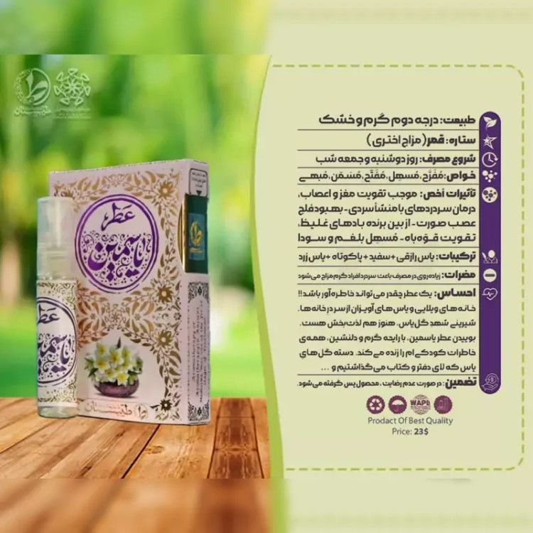 عطر طبیعی و درمانی یاسمین طیّبستان