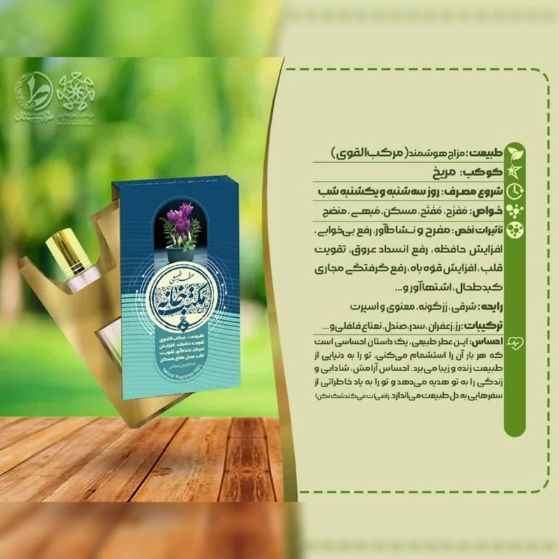 "مزاج هوشمند" این عطر، بر پایهی دانشِ کهنِ طبِ حکما شکل گرفته.