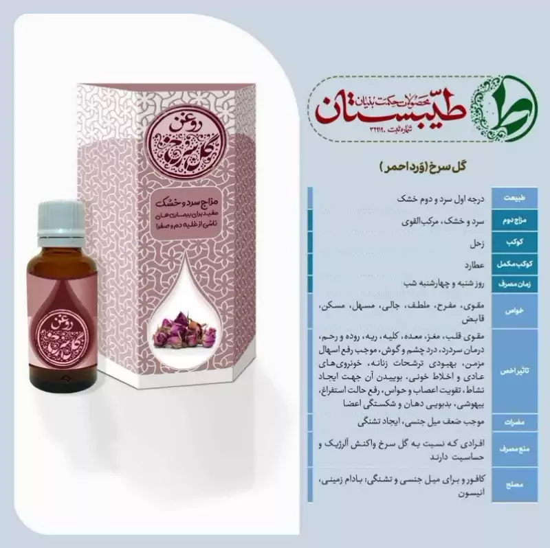 روغن خالص و درمانی گل سرخ طیبستان